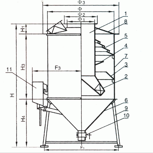 BLS-8L濕式除塵器由主體設(shè)備灰水分離器、除塵塔和次體設(shè)備電控操作臺(tái)、水泵、風(fēng)機(jī)等組成,通過管線連接成為一個(gè)灰水分離、粉塵回收、邊續(xù)除塵利用和水再循環(huán)的完整濕式除塵器系統(tǒng)。